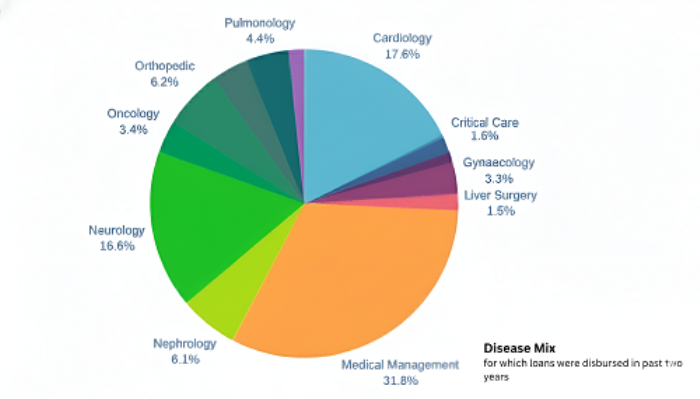 Today, CarePal Money’s lending marketplace disbursements span a wide spectrum of treatments: medical management (31.8%), cardiology (17.6%), neurology (16.6%), and orthopedics (6.2%). High-value specialties such as oncology, nephrology, pulmonology, and liver surgery make up a growing share, underscoring how financing is expanding access to both elective and critical care.